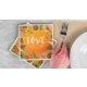 Wedding Shower Cocktail Paper Napkins Templates - Elegant Autumn Maple Leaves, Pumpkins and Sunflowers Watercolor Flowers on Orange Gradient Background.