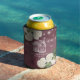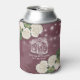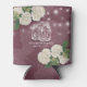 Wedding Shower Can Cooler / koozies Templates - Elegant Script, Mason Jars, Hydrangea Flowers and String Lights on Burgundy Red Floral Linen Background.
