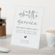 Wedding Shuttle Service Sign: clearly display the shuttle pick-up time with this sign, so guests know exactly when to be ready for transportation. Perfect for reducing confusion and keeping your event on schedule. Customizable colors.