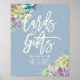 Wedding Gift Table / Cards and Gifts Wedding Decor Sign Poster Templates - Elegant lovely Watercolor Succulent Plants on Blue Background.