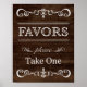 Rustic Favour Please Take One wedding sign in wooden background pattern.