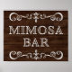 Rustic Mimosa Bar wedding sign in wooden background pattern.