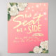 Pick A Seat Not A Side Wedding Sign Poster - Elegant White lovely Watercolor Hydrangea Flowers and String Lights on Pink Gradient Background.