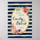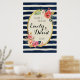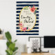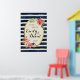 Welcome your wedding guests with this beautiful wedding welcome poster! Navy and ivory watercolor stripes, with flowers in shades of pink, blush, ivory and coral. Text, text colour, and font are completely customisable to create the perfect sign for your wedding. ©Vanilla Lagoon 2016.