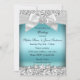 Wedding Silver Blue Glitter Jewel Bow Invitation