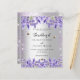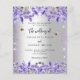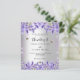 A modern, stylish wedding invitation. A faux silver looking background with violet faux glitter, sparkles, watercolored lavender florals, flowers and bees. Personalise and add your names and the details.