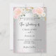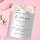 A faux silver looking background with pink faux glitter, sparkles, and blush pink florals. Personalise and add your names and details.
