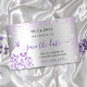 A girly and trendy Save the Date for a wedding. A modern faux silver looking background decorated with purple faux glitter dust and a dress. Personalise and add a date and names. Black and purple coloured letters. The text: Save the Date is written with a large trendy hand lettered style script.