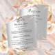 A wedding menu and evening timeline, program. A stylish faux silver looking background decorated with rose gold marble veins. Personalise and add your names, menu and the program. Black letters.