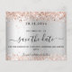 A modern and elegant Save the Date for a wedding. A faux silver background decorated with rose gold faux glitter. sparkles. Personalise and add a date and names. The text: Save the Date is written with a large trendy hand lettered style script.