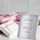A faux silver looking background, decorated with violet, lavender coloured faux glitter sparkles. With the text: Welcome to our wedding. Personalise and add your names.