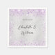 A faux silver looking background decorated with purple faux glitter, sparkles. Personalise and your names and the wedding date.