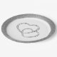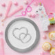 Wedding party paper plate shown in a Silver faux glitter print around the rim with a two hearts print design in the centre.