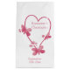 Wedding favour gift bag pink coloured heart and butterflies design. Customise this wedding favour gift bag with your wedding details. Should you require any help with customising then contact us through the link on this page. Pink coloured heart and butterflies design personalised wedding favour gift bag