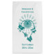 Wedding favour gift bag teal coloured butterflies heart design. Customise this teal coloured wedding favour gift bag with your wedding details. Should you require any help with customising then contact us through the link on this page. Teal coloured heart and butterflies design personalised wedding favour gift bag