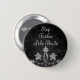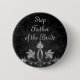 Gorgeous pin on button in a grungy black with a fancy leaf design on it in silvery grey. "Step Father of the Bride" is written at the top.