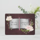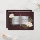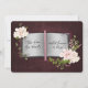 Floral bouquet on open story book with romantic verse for wedding invitation.