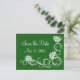 Succulents are one of the newest trends in wedding floral design, and this save the date is accented with succulents on a dark green background, making it perfect for the wedding accented with succulents.