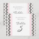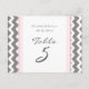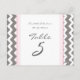 Elegant and modern light pastel blush pink, dark charcoal grey and white wedding table number cards with fun retro chevron zigzags stripes pattern. Customise these cards to create custom table number cards for each table at your wedding. Add your names and wedding date. Pattern available in a wide range of matching wedding products.