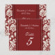 Elegant and classic red and off white cream wedding table number cards with classic floral damask pattern. Customise these cards to create custom table number cards for each table at your wedding. Add your names and wedding date. Pattern available in a wide range of matching wedding products.