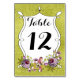 Wedding Table Number, FAUX Green Foil, Flowers Table Number