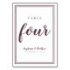 This custom design was created for smaller intimate wedding celebrations. Simple, minimalist and elegant Wedding Table Number FOUR design features a contemporary design with a double frame border in purple on a crisp white background. Personalise wedding table design with your wedding details in modern purple lettering and script. The back of the card is a duplicate of the front. Order one for every table with the individual table numbers.