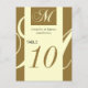 Elegant script font for the initial. Monogram M in a cream or ivory and gold background. Gold wedding table number card design by Elke Clarke ©2010. Purchase at www.zazzle.com/elegantmonograms* Customise with your names and date if you wish. Save one copy with each table number. These cards can be ordered individually but you still receive the volume discount. Other colours or monograms required? Please contact me. I would be glad to help.