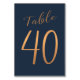 Faux copper metallic gold foil formal calligraphy script wedding reception table card. The dark midnight blue background colour is editable. You can change it after pushing CUSTOMIZE button.