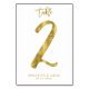 Wedding table number cards - Number 2 - with gold foil effect (faux, printed as an image) and customisable text - you can add bride's and groom's name and wedding date printed on white background