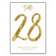 Wedding table number cards - Number 28 - with gold foil effect (faux, printed as an image) and customisable text - you can add bride's and groom's name and wedding date printed on white background
