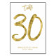 Wedding table number cards - Number 30 - with gold foil effect (faux, printed as an image) and customisable text - you can add bride's and groom's name and wedding date printed on white background