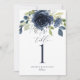 Wedding Table Numbers Navy Blue Watercolor Floral