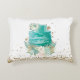 Teal white faux golden pattern custom name Accent Pillow by PiccoGrande. It features a teal colour wedding cake with flowers on white background in the front and faux golden confetti at the bottom of it. Easily amend the name on the front by clicking on the Personalise button.
