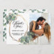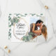 Looking for a photo wedding thank you card? Consider this single photo thank you card featuring chic script text design with eucalyptus and geometric gold frame