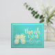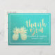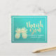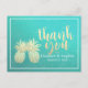 Wedding Thank You Gold Pineapple Couple Teal Roses Postcard