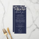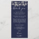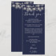 An elegant navy blue wedding celebration thank you reception card featuring pretty string lights. Personalised with your special thank you message set in stylish typography. A special keepsake thank you for your guests. Designed by Thisisnotme©