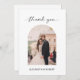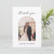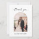 Minimal script photo wedding thank you card with personalised message and custom QR code on the back.
