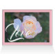 Wedding Thank You written in white and black script. Geometric white rectangle with pink rose. Inside flap has pink rose against pink background with Love written in white. Monogrammed Bride and Groom Initials in gold colour on backside. Type in a special wedding thank you message for each guest and add them separately to the shopping cart. Or, delete text box to leave blank inside to hand-write your own special thank you for a personal touch. Via Personalise and Edit images set to Fill. Original Photography and Design by TamiraZDesigns.