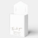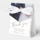 A modern wedding photo favour box with your wedding photo, bride and groom`s names and the wedding date. Trendy script font. The favour box is elegant and stylish.