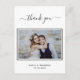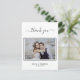 An elegant and modern Thank You postcard, personalised with your own photo. Add Your photo, the wedding date, your names and the thank you note. A trendy black and white card. The text: Thank you on the front and your names on the back are written with a stylish hand lettered script.