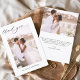 Wedding Thank You Cards that have a photo pictures and text on the front and back. The Thank you cards contain a modern hand lettered cursive script typography that are elegant, simple and modern to use after you minimalist simple wedding day celebration.