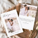 Wedding Thank You Cards that have a photo pictures and text on the front and back. The Thank you cards contain a modern hand lettered cursive script typography that are elegant, simple and modern to use after you minimalist simple wedding day celebration.