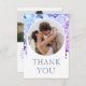 Wedding Thank You Photo Watercolor Wisteria Floral Card features your favourite photo with the text "Thank You" in modern purple script typography accented with watercolor blue, purple and lavender wisteria flowers. On the reverse add an additional photo with your personalised message. Part of a collection designed by Evco Studio www.zazzle.com/store/evcostudio