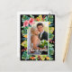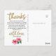 If you had a tropical themed wedding, this is the perfect THANK YOU postcard for your wedding photo. Your photo is surrounded by watercolor tropical flowers and foliage. Thank you handwritten in a brush script over your vertical photo. Gold "Thanks" on the back with a personal message (use message provided or write your own), ending with "with love," in the same brush script and hibiscus flowers. Black gradient overlaps photo so white script stands out. You can eliminate it if it's not needed.