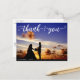 Place two photos on the front and back of this classic wedding thank you postcard, featuring "Thank You" in a stylish white script font with swashes, and personal text thank you message.Other colours available.