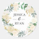 White and gold leafy wreath Thank you stickers with your personalised names for your wedding favours, features green watercolor leaves. Matching designs are also available.