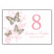 Beautiful graphic art three butterflies painted lady with a swallowtail and floral swirl wedding table number card in pink, cream, aqua teal and brown. A great idea to help guests find their seats at your wedding. Personalise with your names and wedding date. Original design and butterfly ink sketches by Sarah Trett.