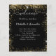 A modern black background, decorated with faux gold sparkles. Personalise and add your names and your wedding day timeline. White text.