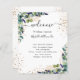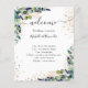 White elegant background, decorated with eucalyptus greenery, golden foliage and faux gold glitter dust. Personalise and add your names and your wedding day timeline.