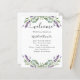 White elegant background, decorated with lavender florals, flowers and eucalyptus greenery. Personalise and add your names and your wedding day timeline.